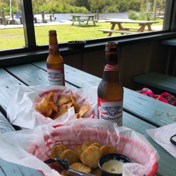 Crispy golden catfish fillets served with fries and hushpuppies